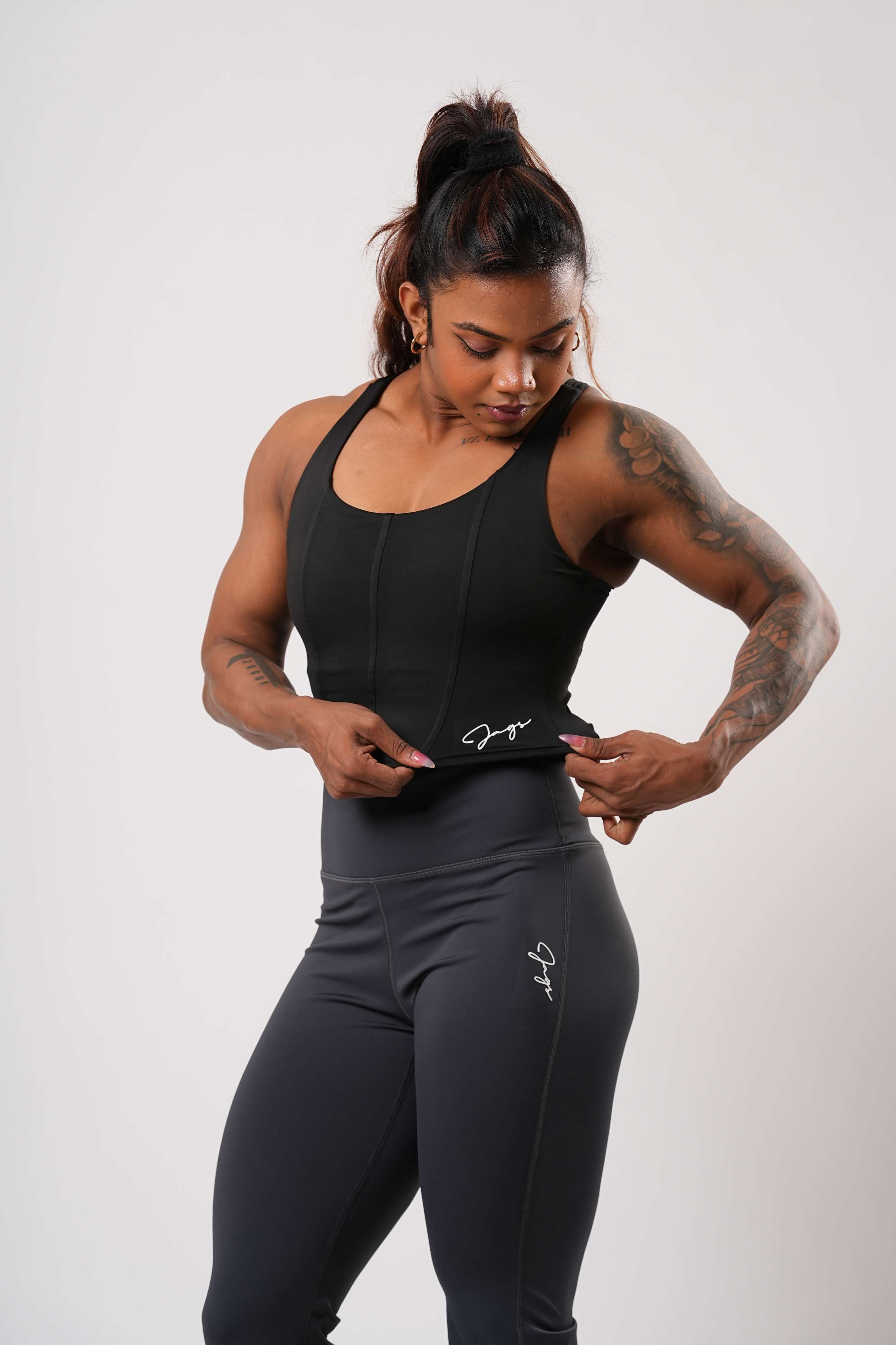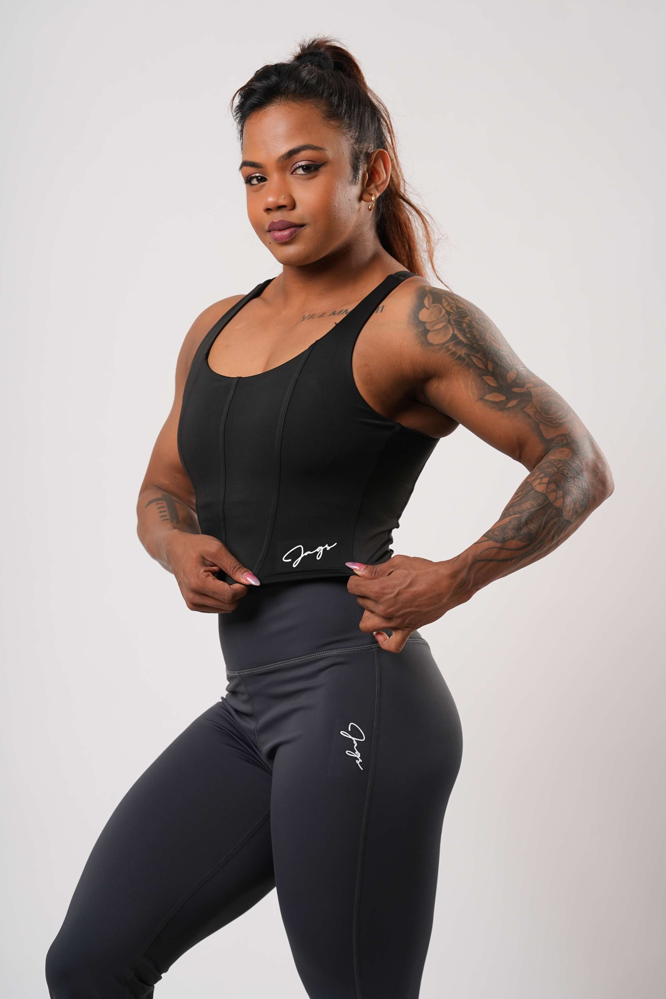 The extended length provides enhanced coverage and stability, making it ideal for training, studio workouts, and athleisure wear. Breathable, sweat-wicking, and finished with minimalist Wearjags branding, Astra is built to perform—beautifully.